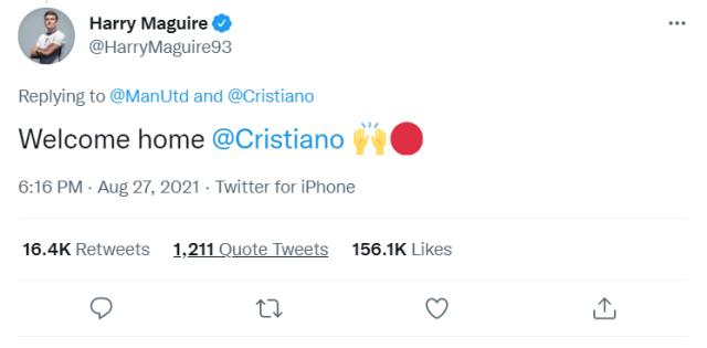 体坛周报全媒体原创 C罗重回曼联,成为了国际足坛今夜最引人关注的话题。而无论是曼联阵中的成员们,还是葡萄牙人首次效力曼联时的老战友,都因为这笔超级转会而疯狂。 桑乔:吓死人的这几个小时啊! 布鲁诺·费尔南德斯:“经纪人布鲁诺”?欢迎克里斯蒂亚诺回家! 注:索尔斯克亚透露,B费一直在向他的同胞C罗介绍曼联的现状。 除了这条推文,B费还发文...