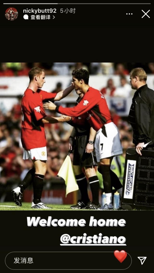 曼联传奇助教费兰也没有发文字,而是发布了一张此前C罗在曼联时期的动图。